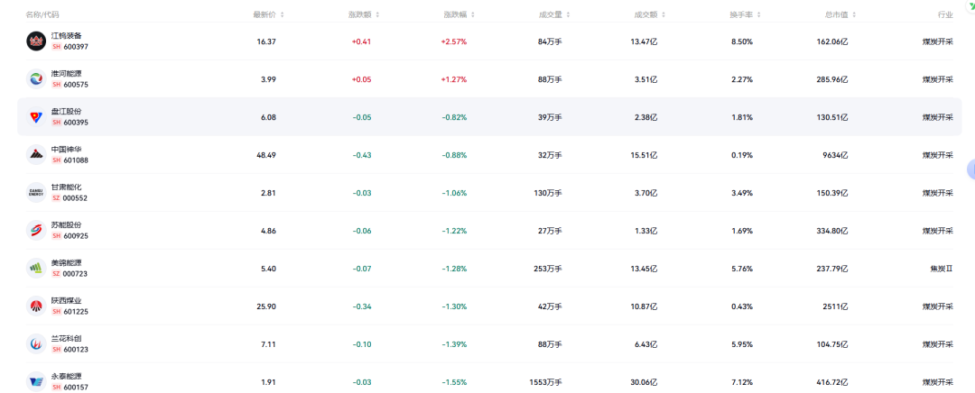 截至3月16日收盘,煤炭板块成分股大多数个股飘绿。